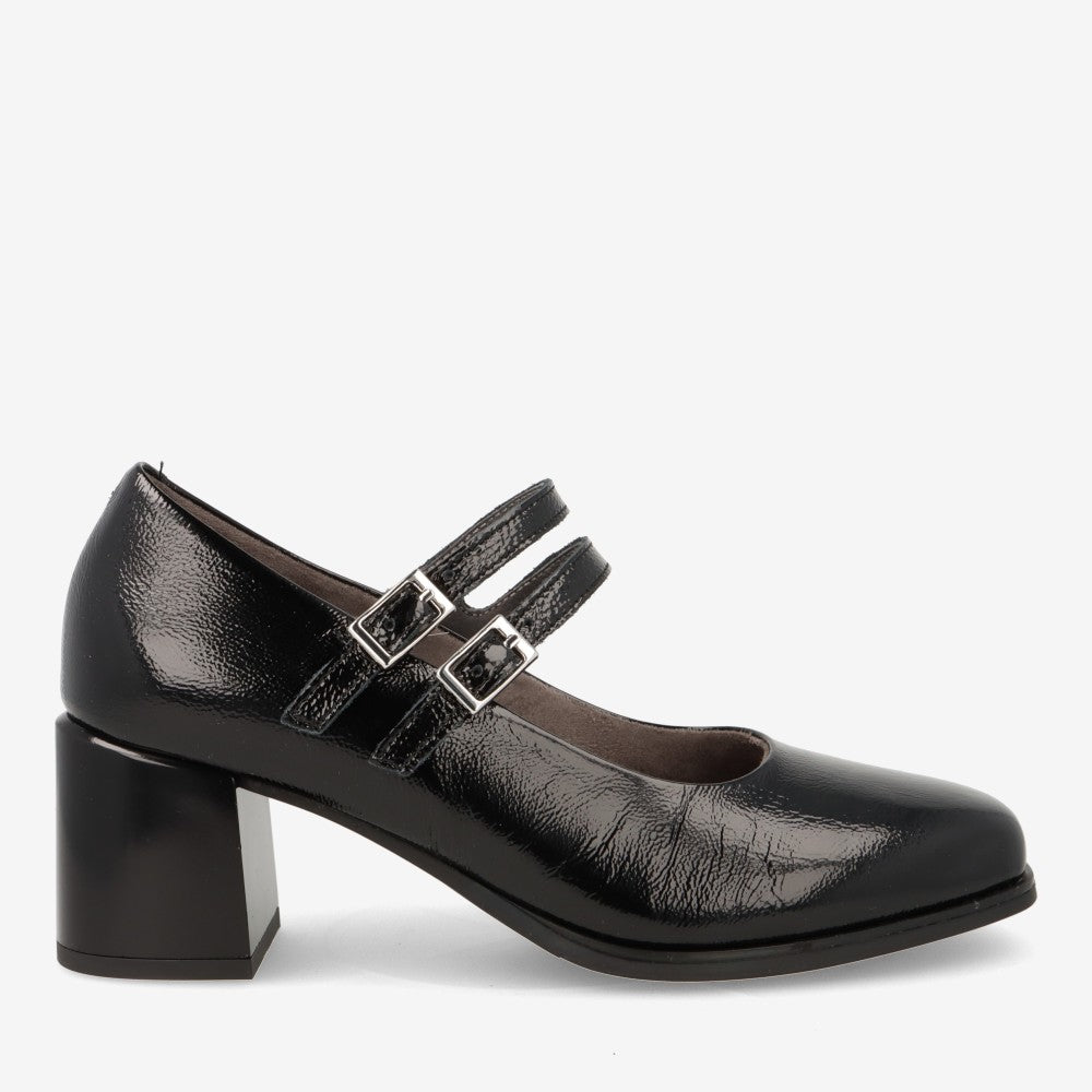 Merceditas de charol con puntera cuadrada y tacón cómodo de 6,5 cm. Con tira doble y hebilla, su plantilla extraíble y suela antideslizante garantizan confort diario. Un diseño clásico y ... Leer más