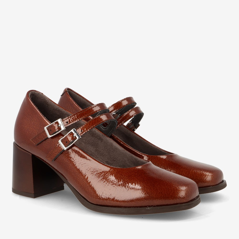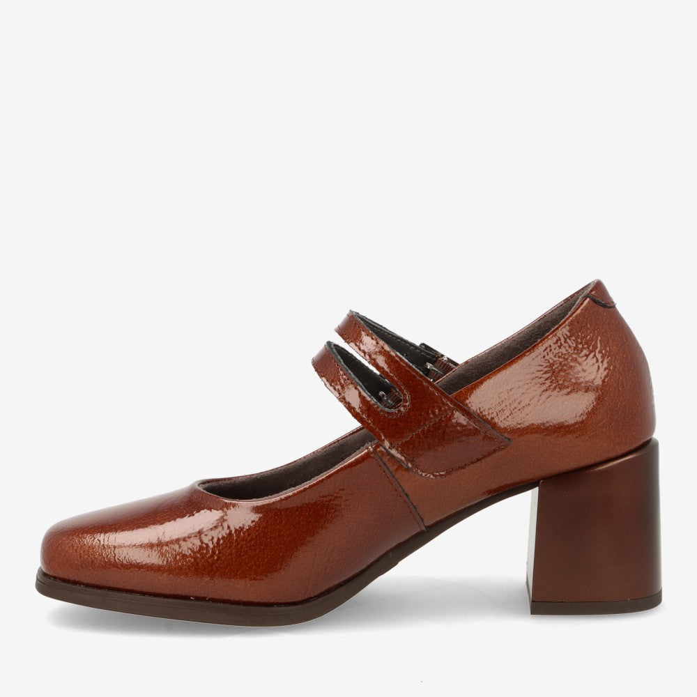 Merceditas de charol con puntera cuadrada y tacón cómodo de 6,5 cm.